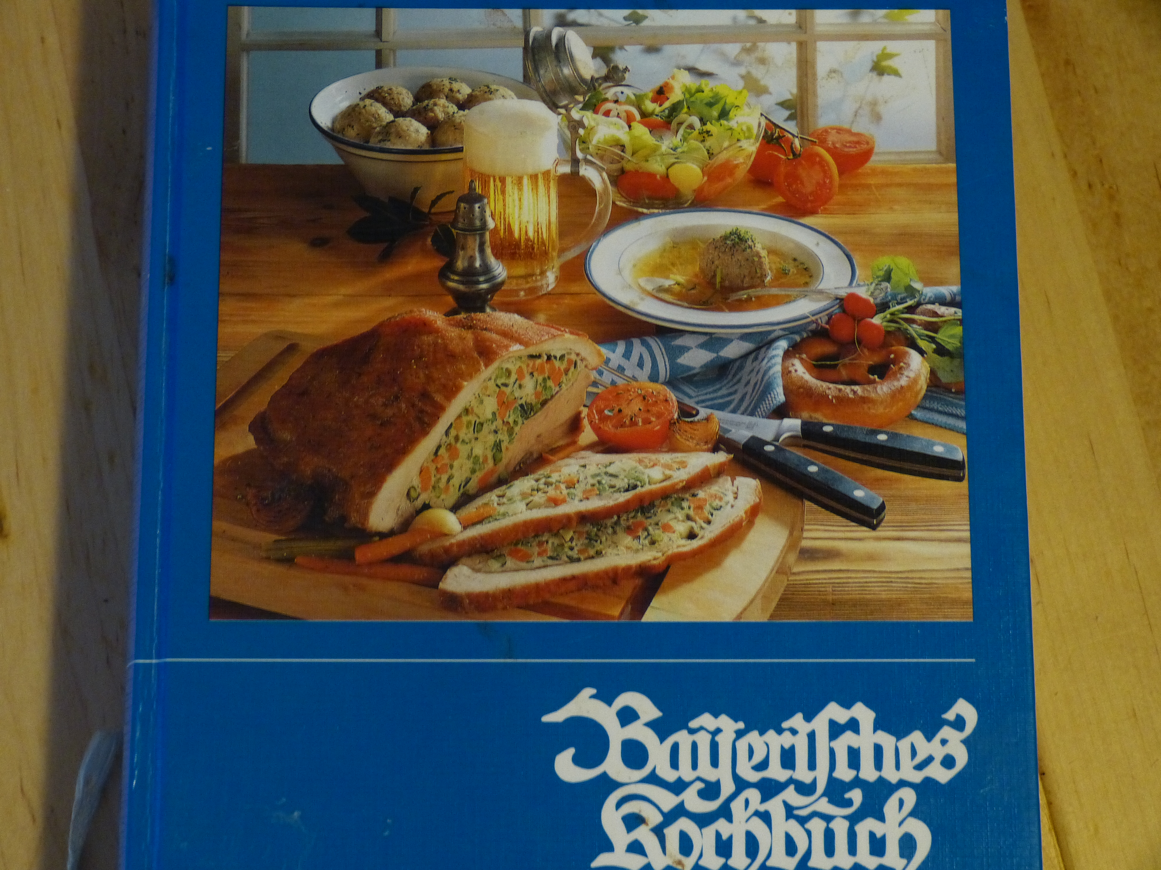 „Bayerisches Kochbuch“ aus dem Birken-Verlag, München, von Maria Hofmann, Oberregierungs-Landwirtschaftsrätin a.D. und Dr. med Helmut Lydtin, Professor für innere Medizin. Beeindruckend, gell? So alt ist mein Schätzchen gar nicht; das liegt aber daran, dass es bereits die 55. Auflage ist. Wennn ich zurückrechne, müßte die erste Auflage aus den 1930ern oder 40ern stammen.