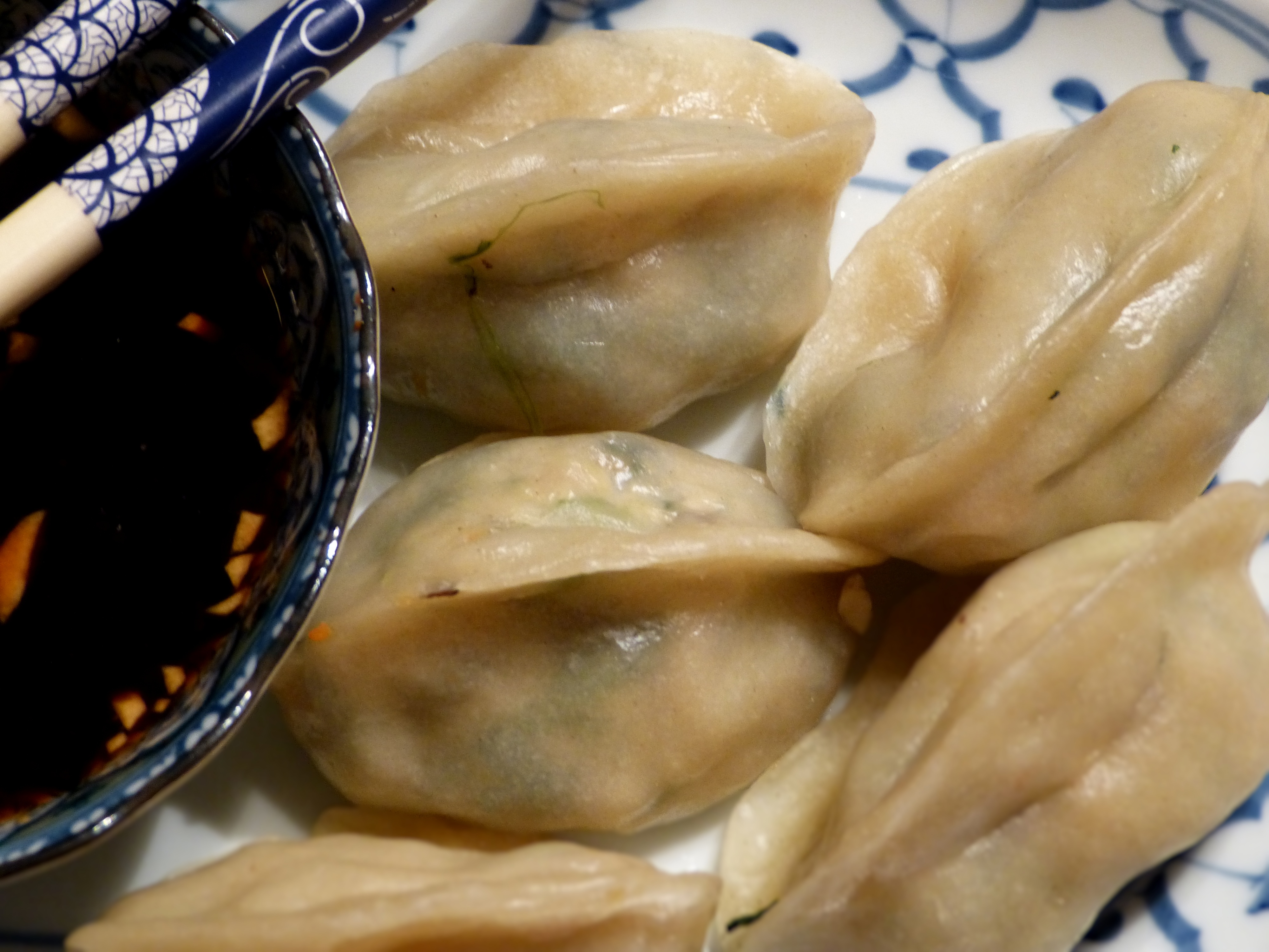 Oh, die sind der Bezeichnung „Leibgericht“ aber mehr als würdig! Sowohl optisch als auch vom Geschmack der Füllung her, den ich mir vorstelle. Ich habe gefüllte chinesische Teigtäschchen mal im Rahmen einer Dim-Sum-Auswahl in einem sehr guten chinesischen Restaurant in Berlin gegessen. Ich hätte statt der nachfolgenden Hauptgerichte einfach immer weiter diese Täschchen essen können. Leider habe ich es mit der Eigenproduktion von gefülltem Nudelteig nicht so, ich bin da ungeschickt.