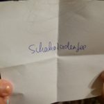 Ach so….und es gab etwas zu gewinnen….Die Ziehung erfolgte ganz altmodisch: Zettelchen schreiben, ordentlich falten, ab in eine Schüssel damit und dann die Glücksfee rufen. Töchterchen hat nämlich darauf bestanden, dass niemand anders als sie den Gewinner ziehen wird. Und gezogen wurde: die Schokoladenfee. Herzlichen Glückwunsch und viel Spaß mit dem Buch! Bitte schicke mir eine E-Mail, ich brauche Deine Adresse, damit das Päckchen auf die Reise gehen kann.