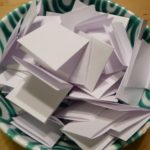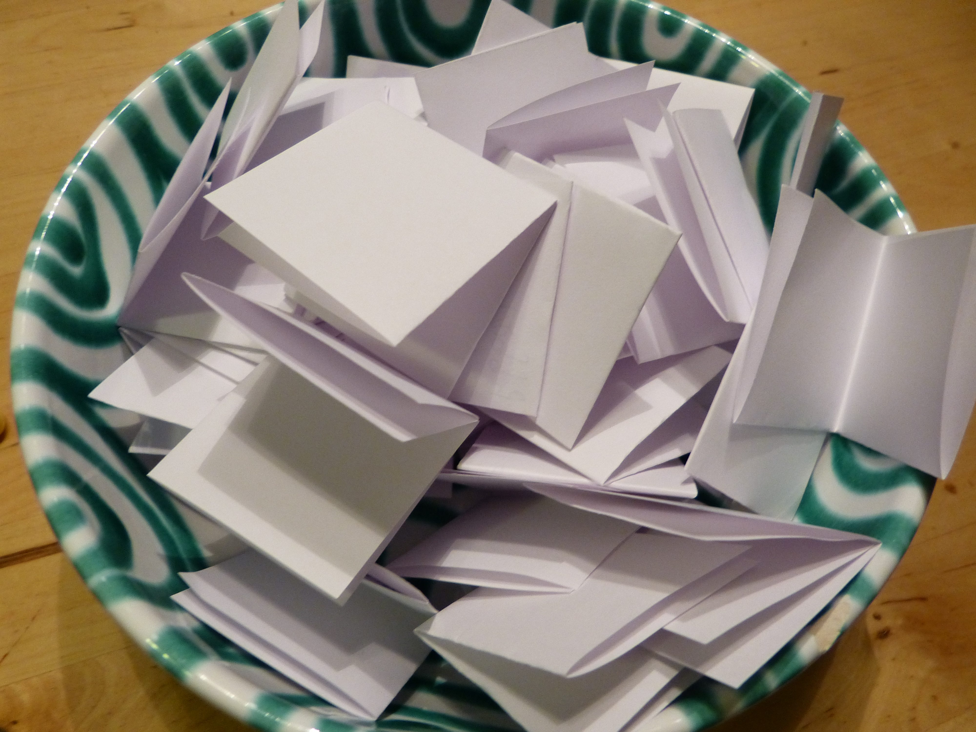 Die Idee mit dem Töchterchen finde ich genial. Ich hatte mir da auch schon so Gedanken gemacht. Denn wir sind nicht wirklich unbeeinflusst. Unser Auge registriert vieles was ins Unterbewusstsein wandert und wenn ich schon fähig bin in Sekundenschnelle immer die Beeren zu pflücken, die genau den richtigen Reifegrad haben, dann bin ich auch fähig gewisse Vorlieben aus einem Korb voll Lose zu ziehen, die ich vorher gefalten habe. Aber das Töchterchen ist neutral. Das hat sie wirklich gut gemacht.