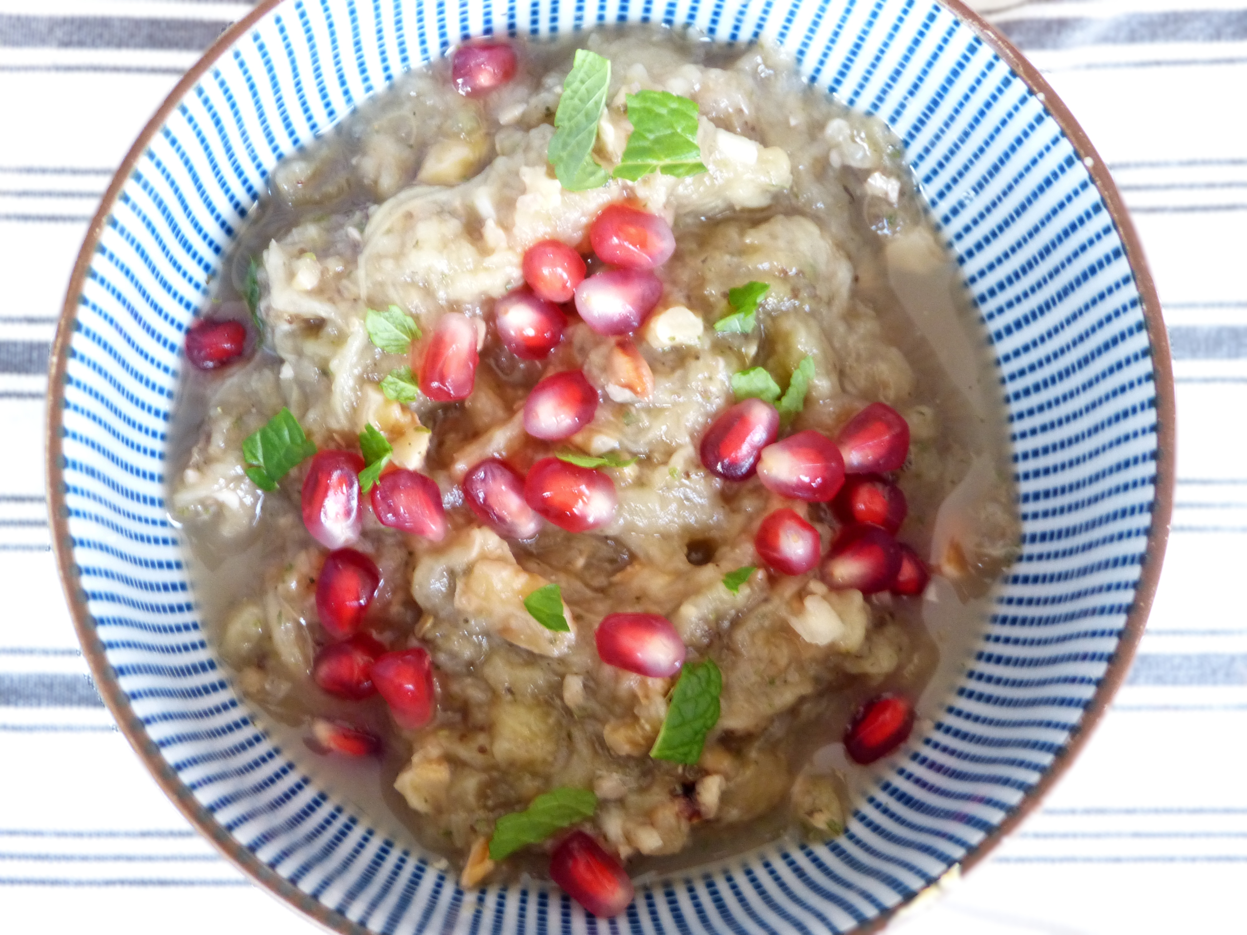 Wunderbar war auch das Aubergininpüree mit Granatapfel: ein fein-säuerliches Püree aus gegrillten Auberginen mit Walnüssen, Granatapfelkonzentrat und Knoblauch.