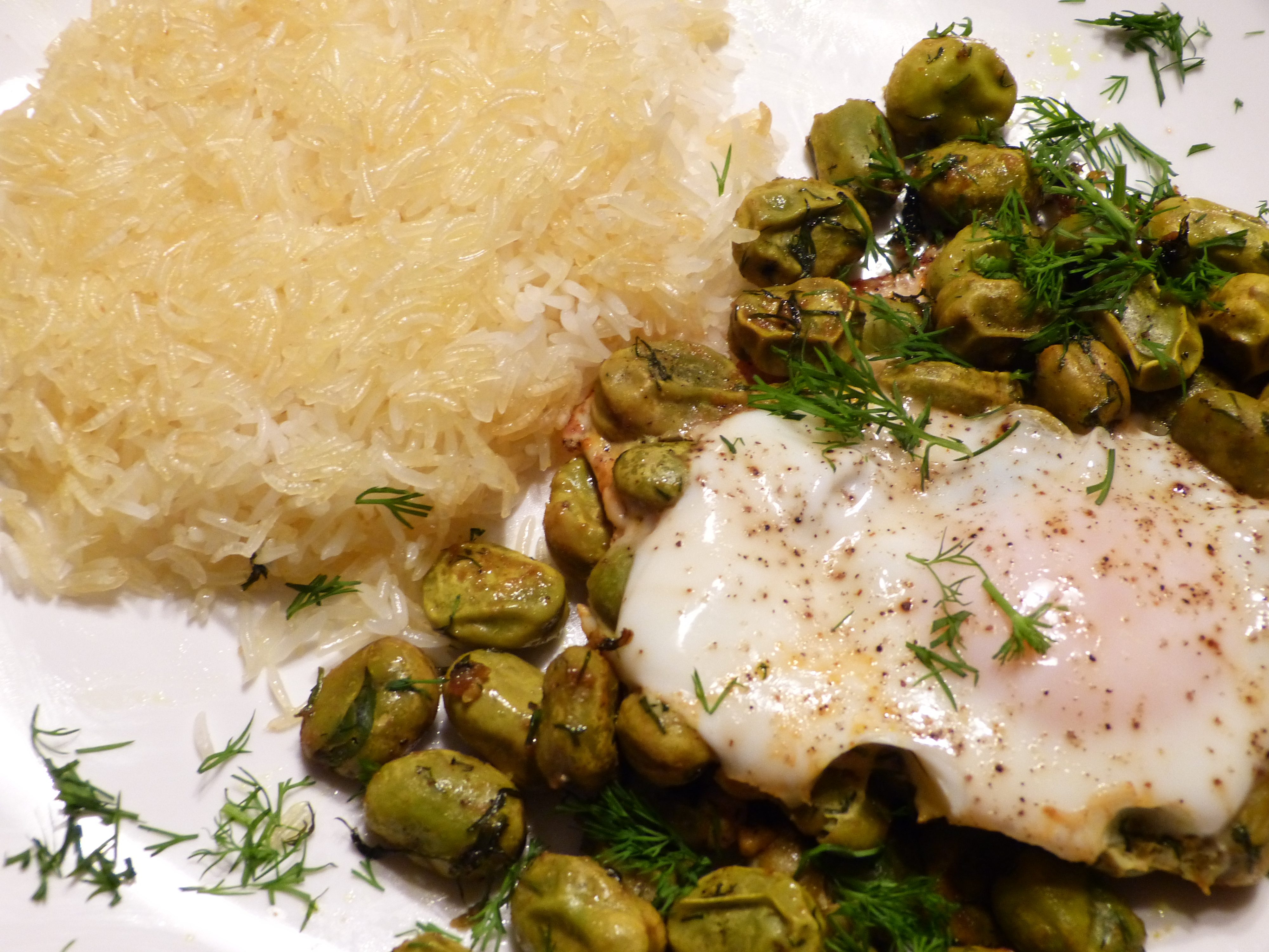 Für das Bohnenragout habe ich auf dicke Bohnen aus der Tiefkühle zurückgegriffen – ein schnelles, feines Mittagessen.