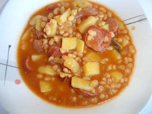 Bei der Giftigen Blonden wird es wieder deftig. Zu ihrem Erstaunen hat sie eine Dose weisse Bohnen im Schrank gefunden. Wer die wohl gekauft hat? Mit Wurst und Kartoffeln wird daraus ein Eintopf, der sich sehen lassen kann. Da könnte man glatt nochmal Dosenbohnen anschaffen 🙂 .