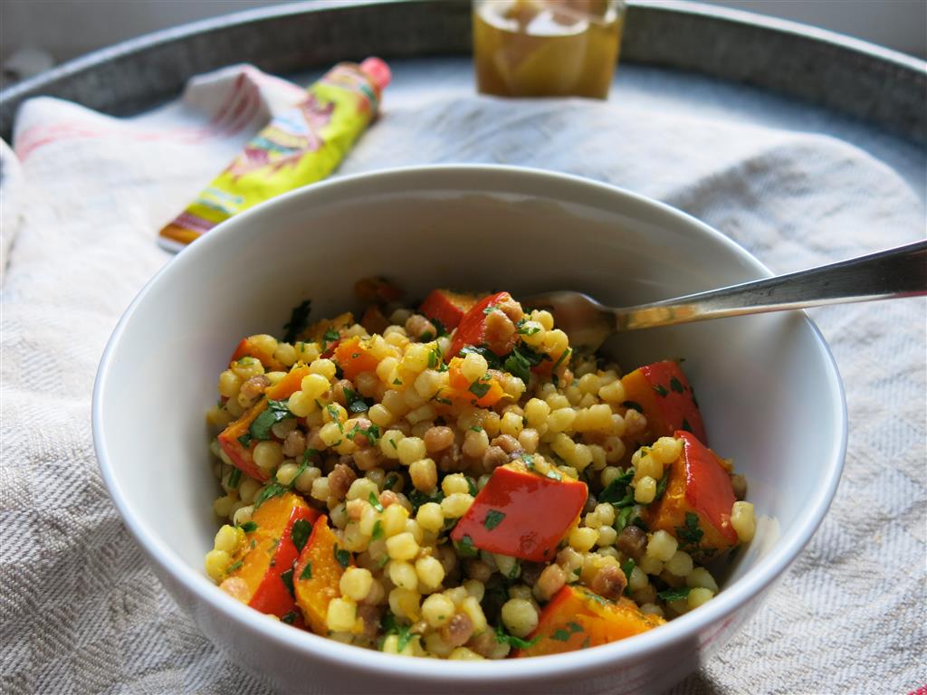 Sabine hat sich sehr gefreut, Fregola Sarda zu finden. Aber dann lag das Tütchen doch etwas länger im Schrank, denn natürlich will man mit solchen Schätzen etwas Besonderes machen. Und dann, dann hat sie die Kügelchen doch „einfach so“ verkocht – zusammen mit Kürbis und Salzzitronen in einem herrlichen Salat. Und der war so gut, dass gleich Fregola nachgekauft werden musste.