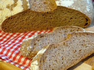 Beim Weizenvollkornbrot gab es die Sauerteig – und die Übernacht-Variante. Mein Sauerteig scheint recht aktiv zu sein; die Gare war etwas zu lang für das umtriebige Kerlchen. Ein wenig breitgelaufen ist mir das Brot. Allerdings ist der Teig auch recht weich. Und so einfach scheint es gar nicht zu sein, Weizenvollkornbrot zu backen, denn auch bei der Übernachtgare habe ich ein wenig mit Breitlaufen gekämpft. Aromatisch waren beide Brote gut – aber was mich angeht, hat da die Sauerteigvariante immer die Nase vorn. Das gibt auch für die Frischhaltung.