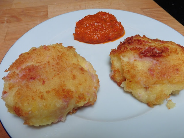 Bei der Turbohausfrau ist Kartoffelpüree übrig geblieben. Daraus hat sie diese fantastischen Kartoffellaibchen gemacht. Wenn ich mir die anschaue – zum dumm, dass bei uns nie Püree übrig bleibt. Ich muss wohl mal mit Absicht etwas mehr machen…..