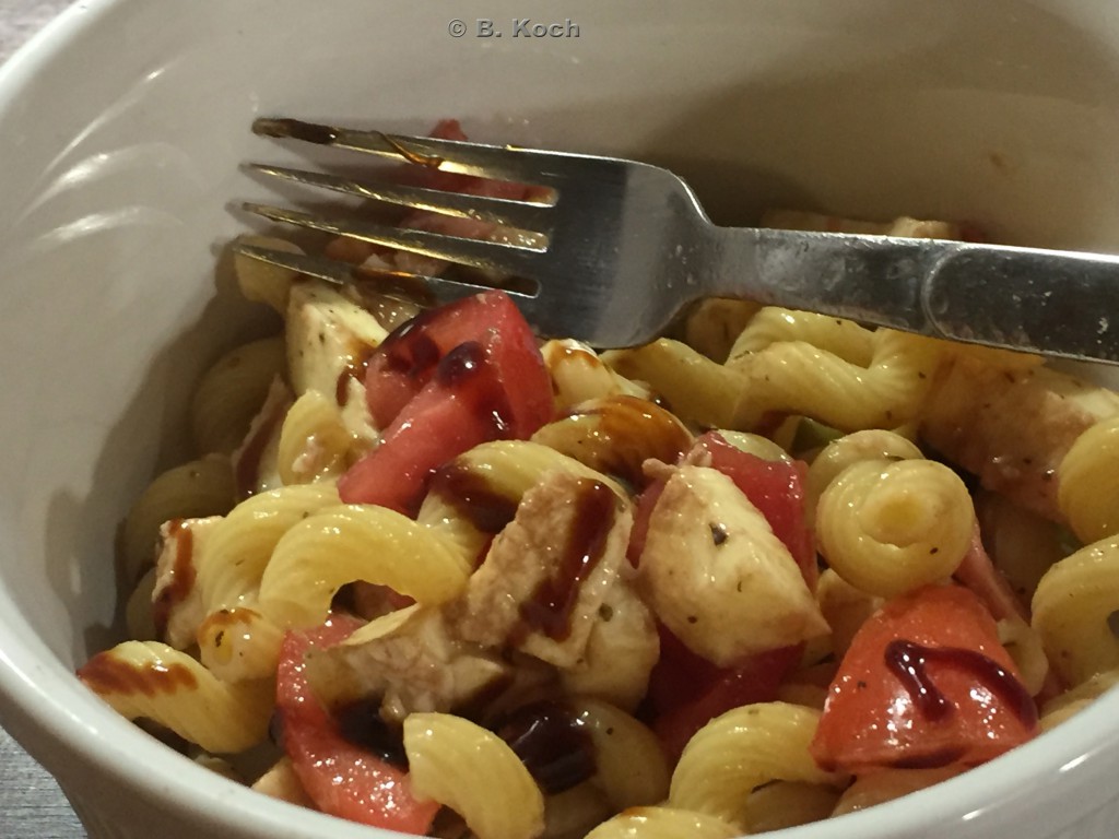 Überhaupt ist Britta sehr erfinderisch, wenn es darum geht, das Beste aus den Vorräten herauszuholen. So schafft sie es aus den Zutaten Nudeln, Ochsenherztomaten und Mozzarella gleich verschiedene Gerichte zu fabrizieren: Nudelauflauf und Nudelsalat.