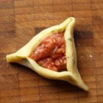 Wie auch immer – klassische Hamantaschn sind süß gefüllt; Mohn oder Pflaumenmus sind sehr beliebt. Ich bin ja eher auf der herzhaften Schiene unterwegs, und so habe ich mich gefreut, als ich bei Leah König* Rezepte für herzhaft gefüllte Hamantaschn gefunden habe.