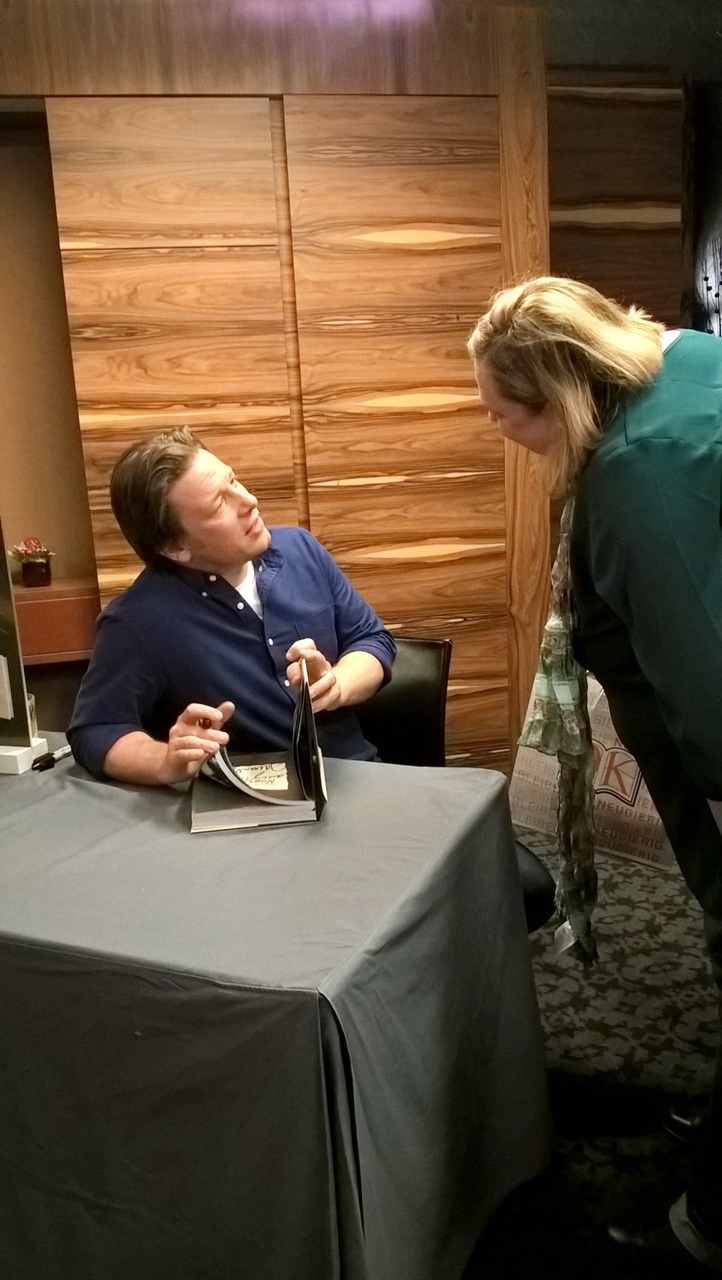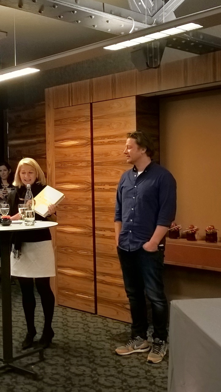 Ein paar Rezepte habe ich schon mal probiert; zwei der Rezepte stelle ich Euch in den nächsten Tagen vor – und den großen Weihnachtsbraten, den gibt es dann ein wenig später. Ich hatte nämlich sozusagen eine doppelte Einladung, Jamie zu treffen. Einerseits natürlich vom Verlag, aber andererseits auch von Tefal, deren Markenbotschafter Jamie Oliver ja ist. Da gibt es einen Topf, und den werde ich für ein Festessen nutzen….also dranbleiben 😉