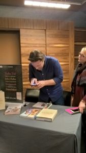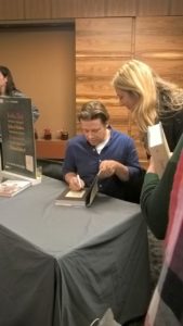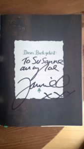 Also, jedenfalls war das bisher so. Inzwischen bin ich aber zum Fan mutiert. Und zwar, weil ich vor einiger Zeit das Glück hatte, Jamie persönlich zu treffen. Er war in München, um für seine neuen Bücher zu werben und ich war eingeladen. Wow! Ich war ziemlich neugierig. Und am Ende ziemlich erfreut. Jamie stellte sich als ein fröhlicher, humorvoller Mensch heraus, der sehr geerdet ist und liebt, was er tut. Noch ein paar Adjektive? Begeisterungsfähig, enthusiastisch, geduldig. Er hat sich für jede*n von uns Zeit genommen. Ich bin also beeindruckt. Und stolze Besitzerin zweier signierter Bücher.