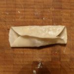 Jetzt alle Zutaten für die Füllung in eine große Schüssel geben und mit Hilfe eines Löffels oder eines Silikon-Spatels miteinander vermengen. Die Füllung für eine Stunde in den Kühlschrank stellen. Sie läßt sich leichter in die Hüllen packen, wenn sie gekühlt ist.