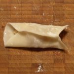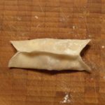 Diesmal war ich faul – ich habe fertig gekaufte Dumpling-Wrappers verwendet. Und ich habe habe eine neue Form ausprobiert – die in V-Form gefalteten Dumplings sind doch putzig, oder? Und man kann sie gut zum Braten in die Pfanne stellen.