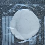 Jetzt bauen wir die Teigtaschen zusammen. Der Teig wird nicht ausgerollt. Chinesische Profis ziehen ihn mit dem Küchenbeil zu runden Teigscheiben aus. Mir war das (noch?) etwas zu spektakulär. Ich habe mit Gefrierbeutel und Wasserglas gearbeitet. Dafür aus einem Gefrierbeutel 2 Quadrate ausschneiden und sie jeweils auf einer Seite mit Öl einreiben.