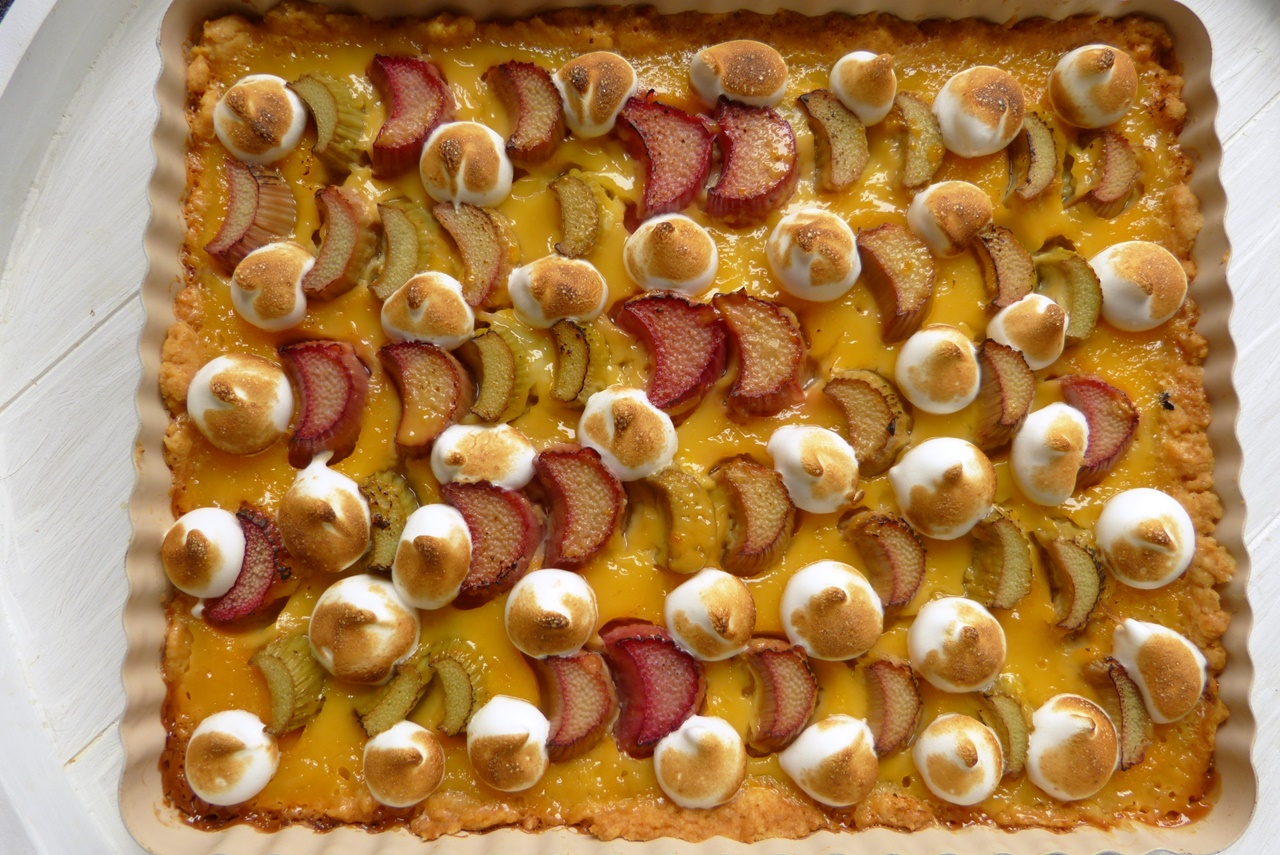 Was ich schon als Kind mochte, war Rhabarberkuchen. Ich meine diesen einfachen Blechkuchen mit Rhabarber-Belag und Baiserschicht. Den gab es nicht bei uns – den gab es bei meiner Freundin. Dieser Kuchen war dann auch später das erste, was ich wieder mit Rhabarber gemacht habe.