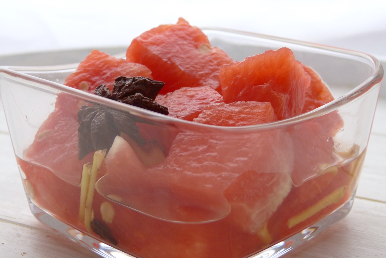 Folglich habe ich mich mit Begeisterung auf diese diese Pickles gestürzt – ich habe sie in der Elle à Table gesehen und behaupte deshalb einfach mal, dass sie aus Frankreich kommen ;-). Gut, dass Wassermelonen so groß sind, da bleibt Raum für Experimente. In diesem Fall hat das Experiment sich ausgezahlt – das Einlegen macht aus der Wassermelone etwas ganz neues. Die Pickles sind super als Beilage zum Grillen. Allerdings gehöre ich in diesem Fall zu den Naschern. Will sagen, man kann auch so oft am Glas vorbeilaufen und sich bedienen, dass hinterher keine Grillbeilage mehr übrig ist…..