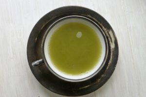 Wenn man etwas müde ist, dann kommt der „Grüne Matcha-Zen“ gerade richtig. Hierfür wird ein grüner Tee gekocht und dann zusätzlich mit ordentlich Matcha-Pulver aufgepeppt. Das macht nicht nur wach. Matcha hilft auch dank seiner Inhaltsstoffe, die Neurotransmitter im Gehirn zu versorgen, die unsere Stimmung positiv beeinflussen. Ruhe und Wachsamkeit werden gefördert.