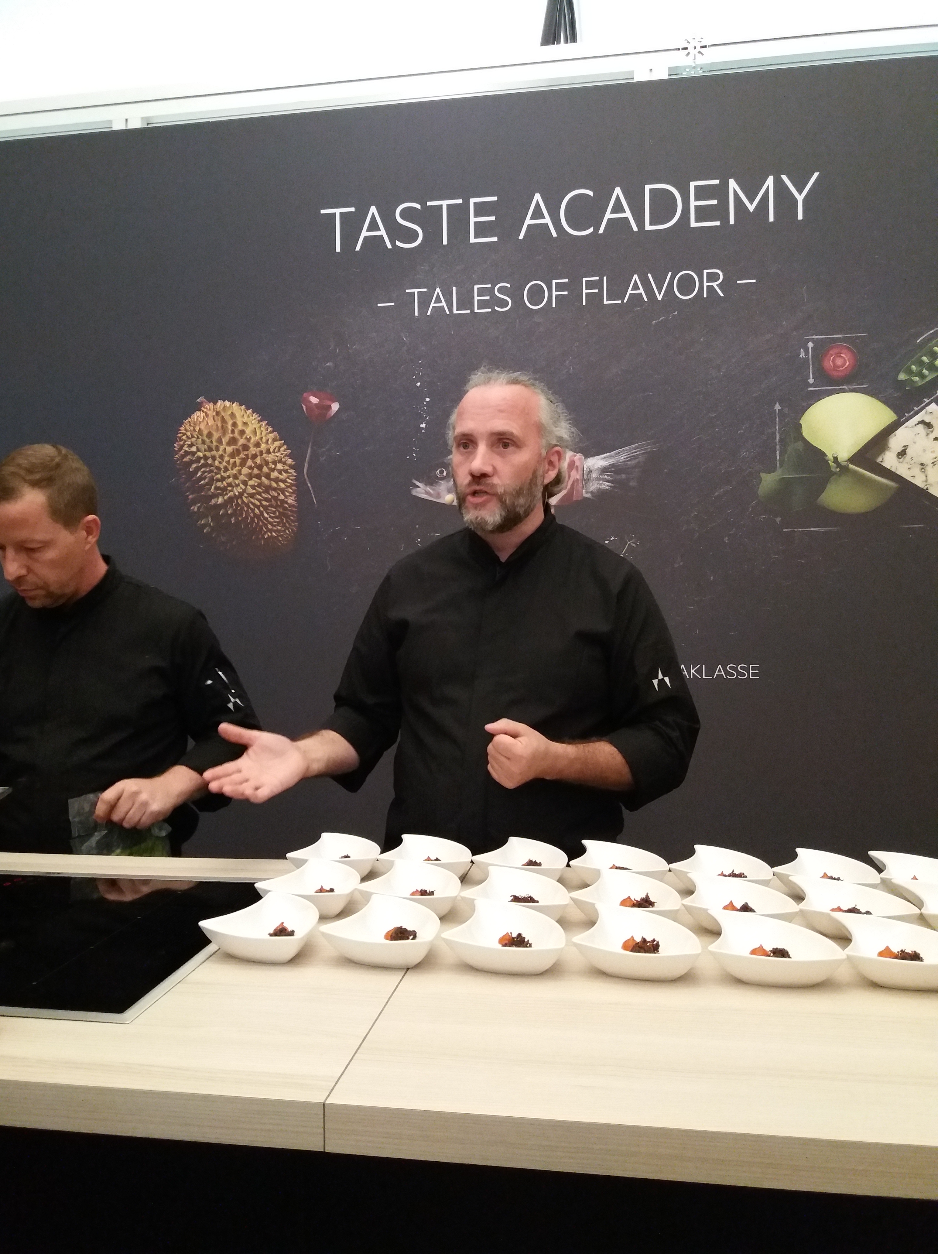 Und ich habe mich gefreut, dass Heiko Antoniewicz im Rahmen der Taste Academie für uns den restlichen Abend gestaltete. Er befasst sich viel mit der Molekularküche, arbeitet oft mit Sous Vide und Fermentation und baut gerne asiatische Komponenten in seine Gerichte ein. Seine Kreativität und sein Kenntnisreichtum sind einfach begeisternd. Und er teilt sein Wissen gern.