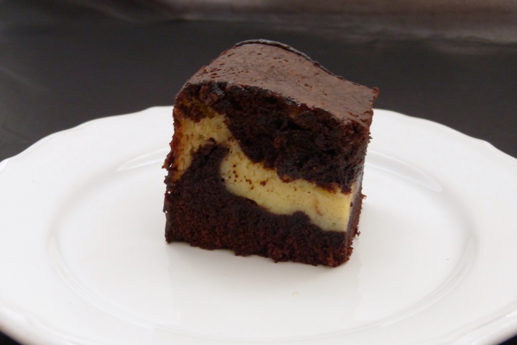 Meine Tochter hatte das Buch als erste in den Fingern und hat gleich Klebezettel verteilt. Ganz oben auf ihrer Wunschliste standen die Käsekuchen-Brownies. Für die Brownies werden eine Käsekuchenmasse und eine Browniemasse hergestellt, das Ganze kommt dann abwechselnd in die Form. Das Besondere: in den Brownieteig kommt statt Schokolade Kakaopulver, so bleibt der Teig auch nach dem Abkühlen schön mürbe. Die Brownies waren toll, aber auch sehr üppig – sie glänzen mit 9 Eiern und fast einem Pfund Butter….