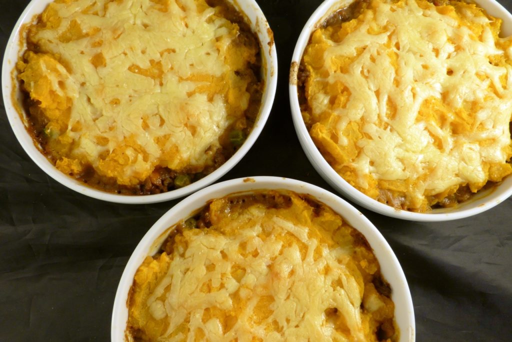 Keema – das ist klassischerweise ein indisches Hackfleischgericht. In dieser Variante ist es typisch angloindisches Fusion-Food; Shepherd’s Pie, indisch angehaucht. Statt einer Kartoffelhaube gibt es eine Haube aus Kartoffeln und Süßkartoffeln, in der Hackfleischsauce versteckt sich noch etwas Gemüse und gewürzt wird mit Curry und Garam Masala. Uns hat das richtig gut gefallen.