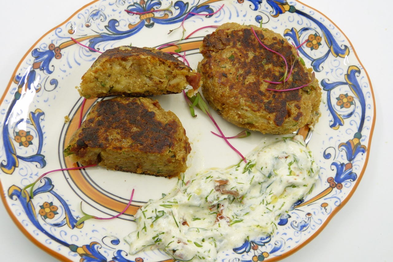 Ich habe dazu einen Joghurtdipp mit Petersilie, Dill und getrockneten Tomaten serviert.