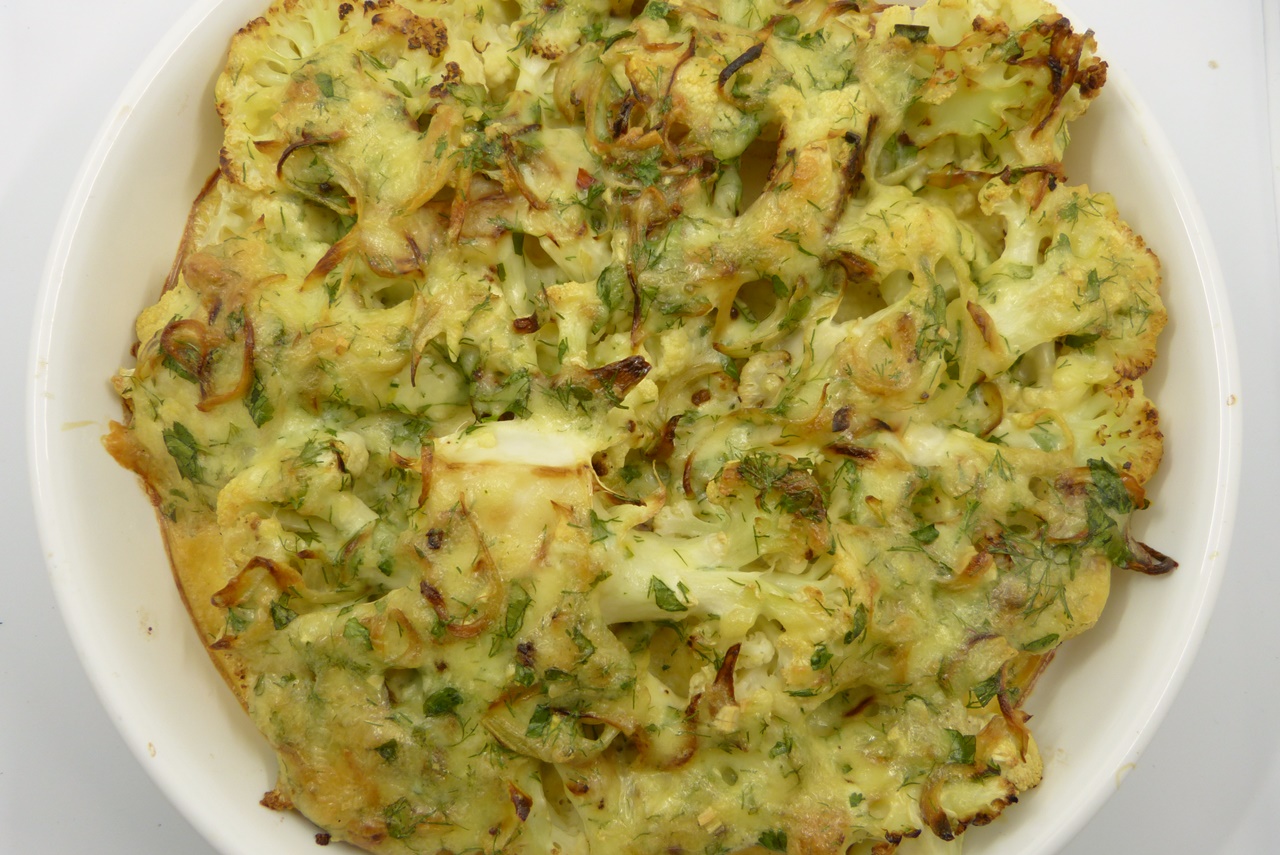 Oft genug habe ich es erwähnt – ich liebe Blumenkohl in Käsesauce. Aber dennoch, auch hier habe ich gegen Abwechslung nichts einzuwenden; und so kamen mir diese überbackenen Blumenkohlsteaks aus Olia Hercules „Kaukasis“ gerade recht.