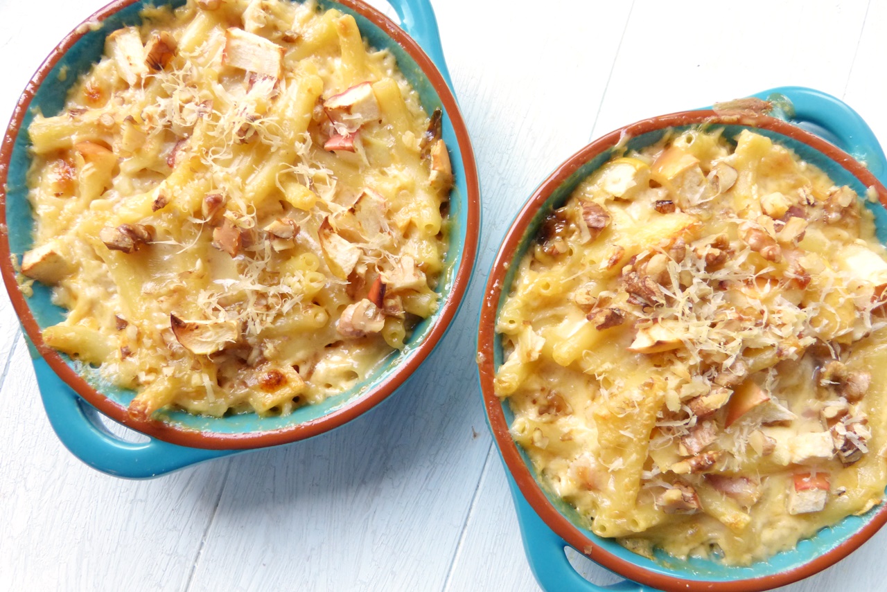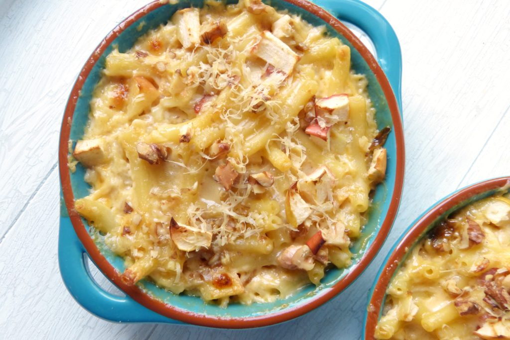 Pasta mag ich ja sowieso, und Mac and Cheese – ja, geht eigentlich immer. Es muss aber nicht immer das Gleiche sein; bei Molly Yeh zum Beispiel findet man da viele tolle Varianten. (Das zugehörige Buch stelle ich Euch auch noch vor…). Diese hier hat mich sooo angelacht, und zu Recht: da ist Brie an der Sauce, das macht sie richtig schön zart-schmelzend, die Apfelstückchen passen super und ganz ehrlich – ein Topping aus Nüssen kann ohnehin nicht schaden.