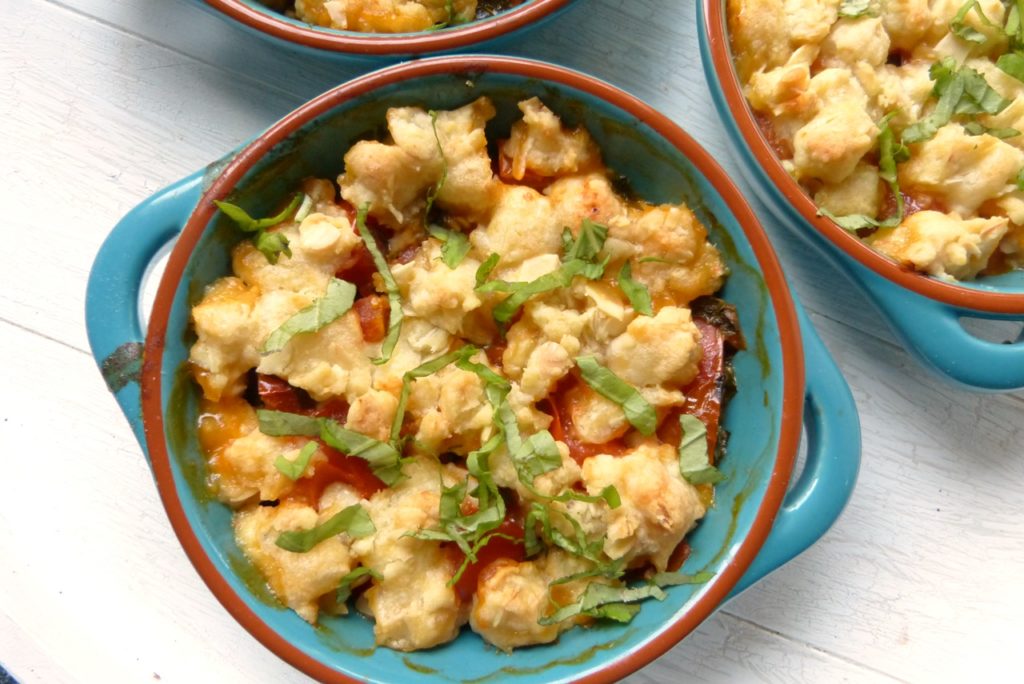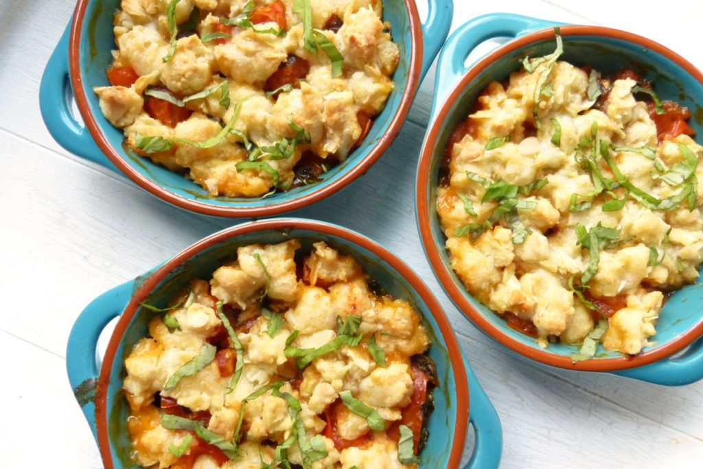 Die Streusel über die Tomatenmasse bröseln. Alles im heißen Ofen ca. 20 min backen, bis die Streusel gegart und goldbraun sind.