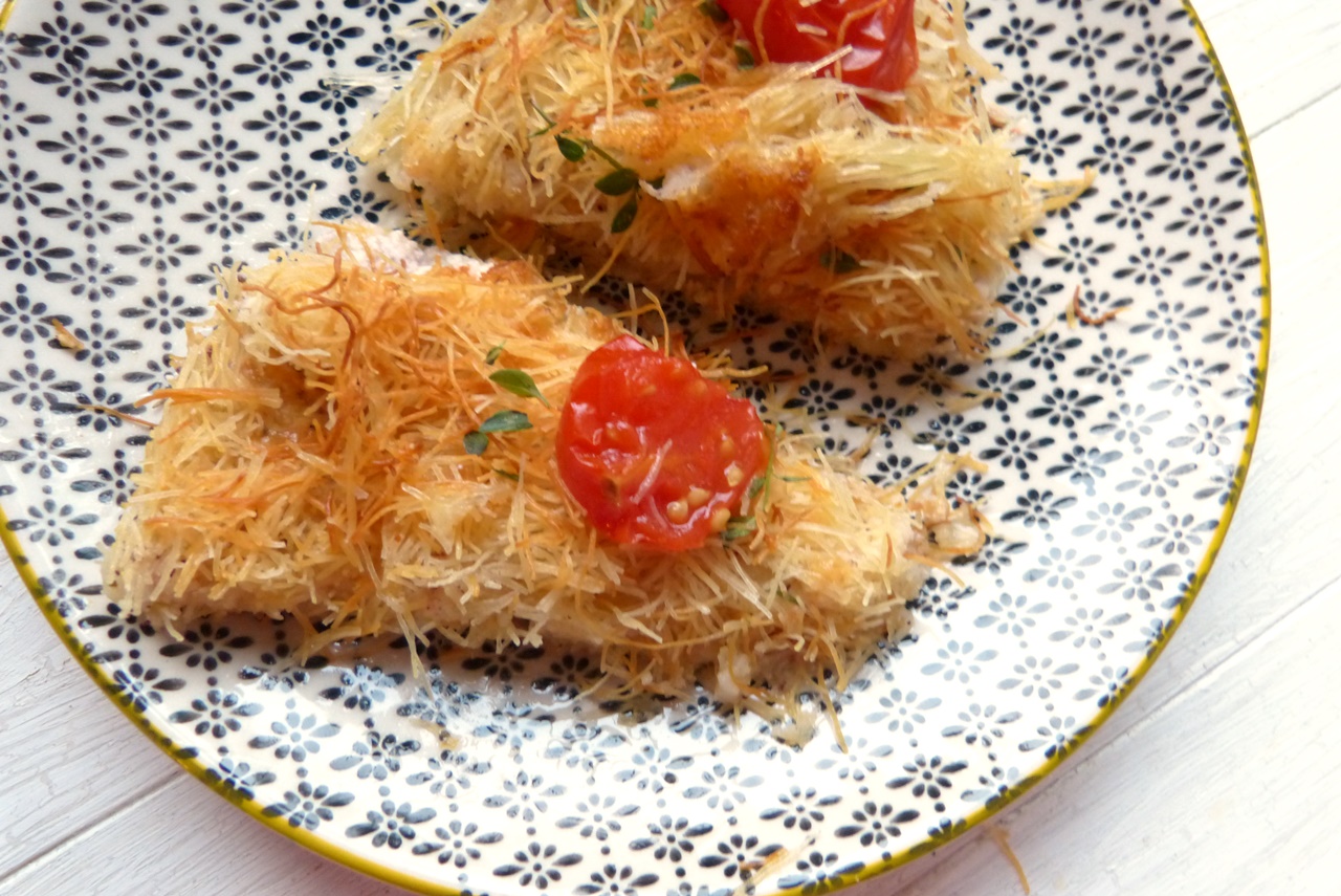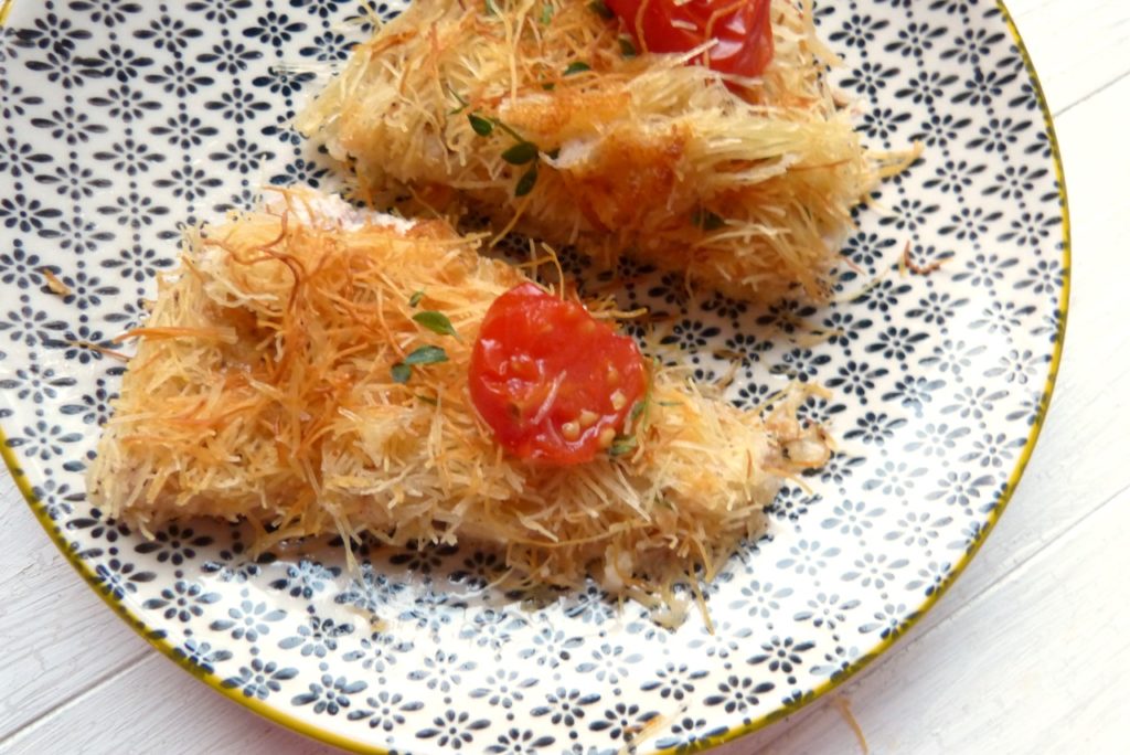 Kadiafi sind ganz feine frische Nudeln; man findet sie im türkischen oder orientalischen Lebensmittelladen im Kühlregal. Klassischerweise werden sie mit Zuckersirup zu einem (sehr süßen) Dessert verarbeitet.