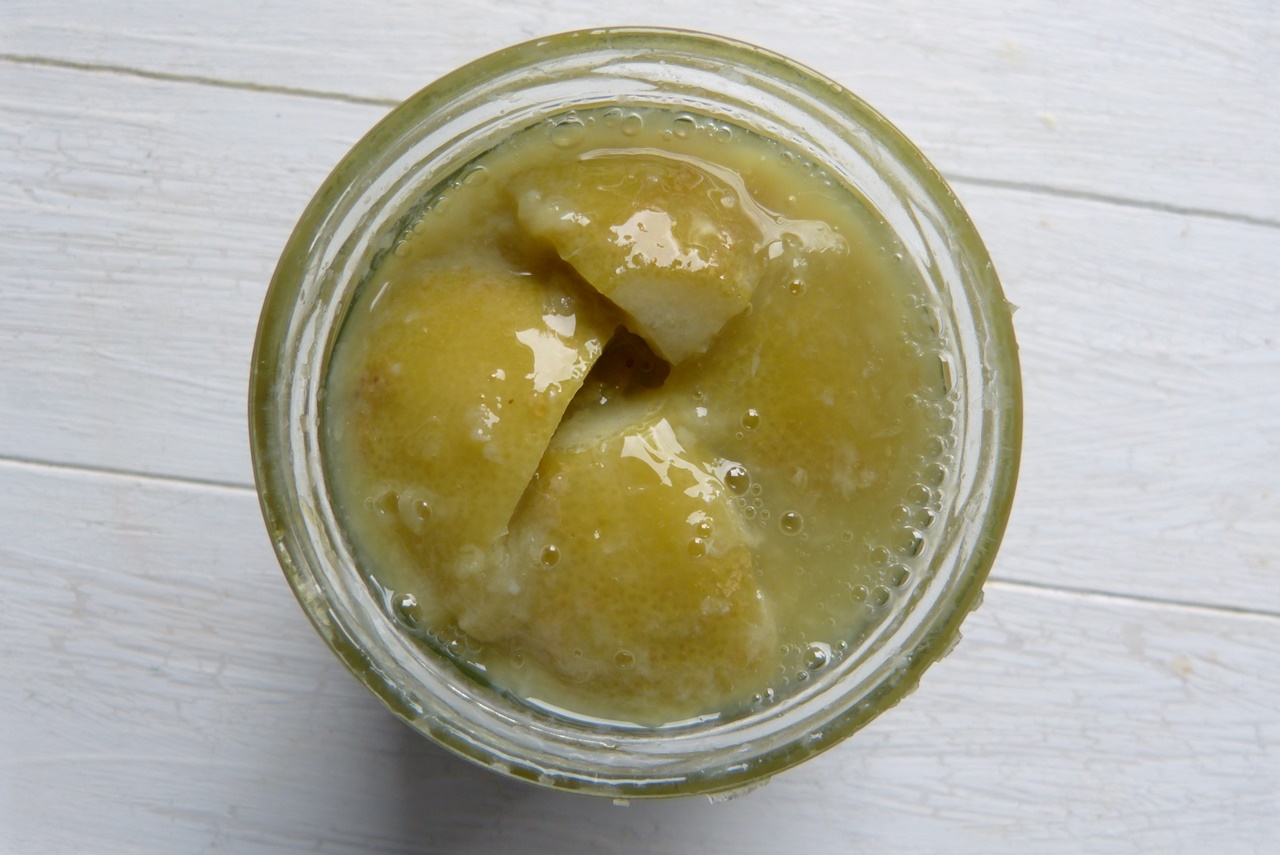 Fangen wir an mit eingelegten Zitronen. Bei der klassischen Variante hat man eigentlich ganz schön viele Reste: Man legt ganze Zitronen ein, presst mehr Zitronen für Saft aus, hat also Schalen übrig, und bei der Verwendung wirft man das Fruchtfleisch weg. HFW legt einfach die Schalen der Zitronen ein, aus denen er für andere Zwecke Saft ausgepresst hat. Das minimiert die Reste sehr – und ich werde es in Zukunft nur noch so machen.