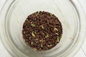Auch Kaffeesatz wird weiterverwertet, und zwar nicht nur im Garten: hier wurde er getrocknet und zusammen mit Gewürzen zu einem Rub verarbeitet.