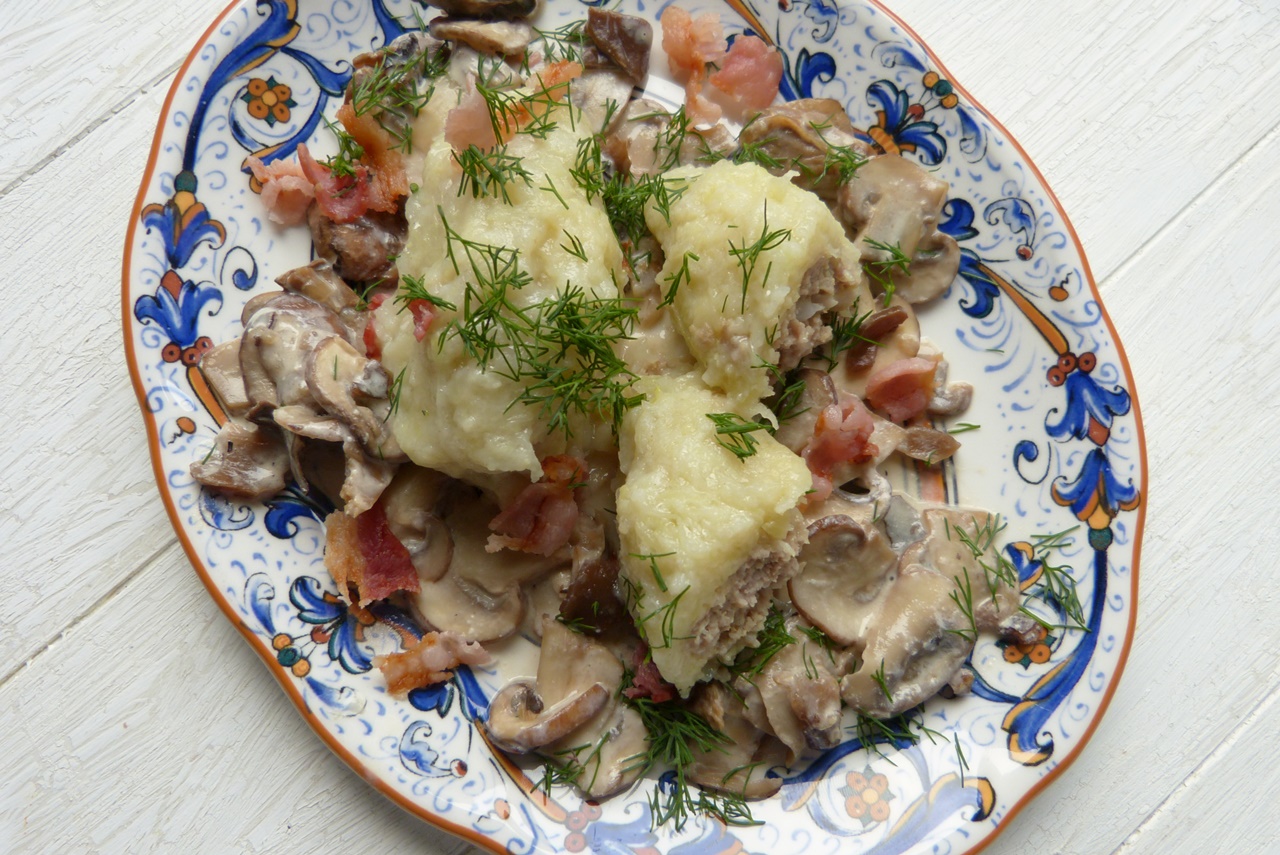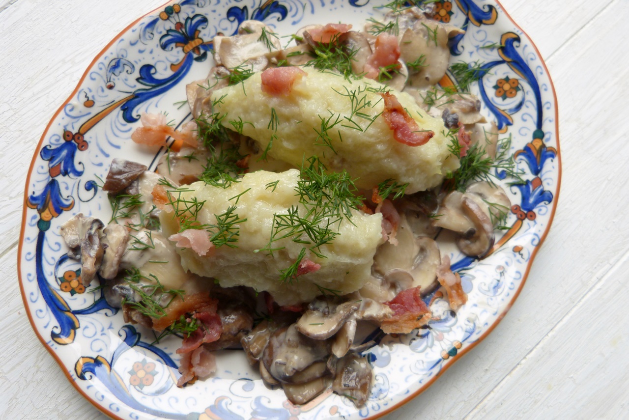 Und dann habe ich bei BBC Good Food diese Klösschen entdeckt, und die mussten unbedingt auf unsere Teller. Tatsächlich ist das traditionelle litauische Hausmannskost: sättigende, gefüllte Kartoffelklößchen. Dabei ist die Kartoffel noch gar nicht so lange heimisch in Litauen – sie wird dort erst seit dem 18. Jahrhundert angebaut, hat dann aber rasch die Küchen erobert und wird vielseitig eingesetzt.