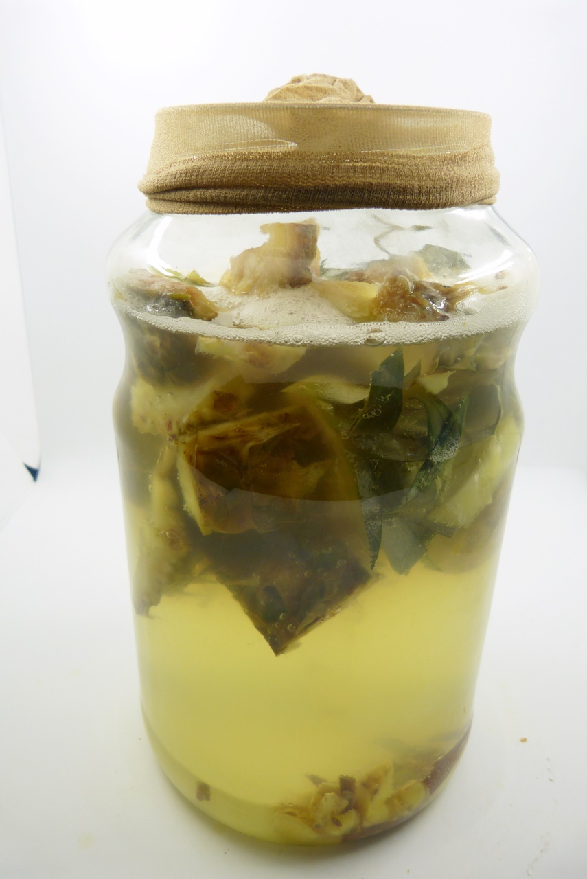 Außerdem ist Tepache ein sehr nachhaltiges Getränk – es wird angesetzt aus den Teilen der Ananas, die man nicht isst – also Strunk, Schale und Grün. Ich mag Ananas sehr, esse sie aber eher selten. Aber wenn ich dann schon eine Bio-Ananas anschaffe, finde ich es toll, wenn ich auch wirklich alles verwerten kann.