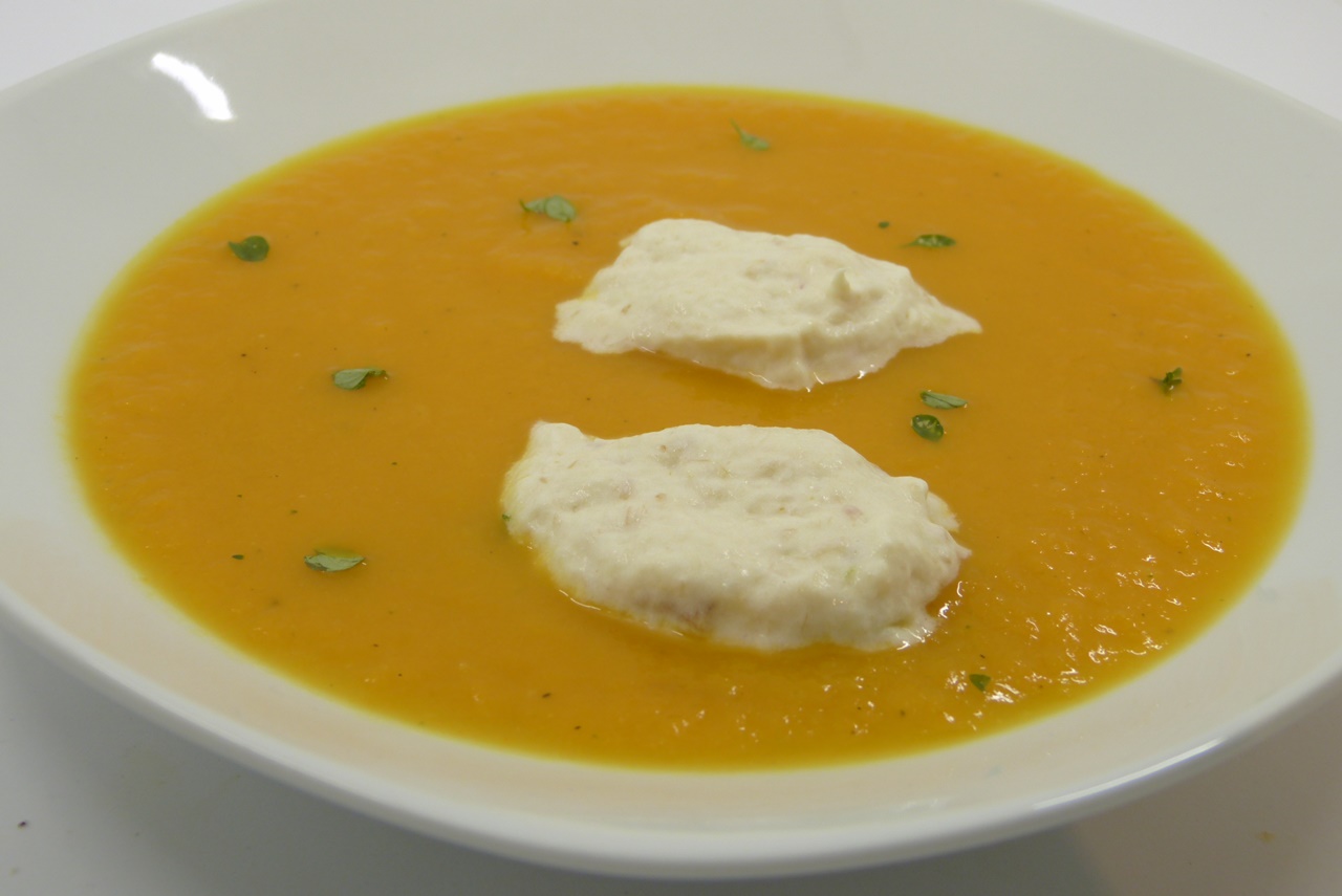 Für dieses Mal habe ich eine Karottensuppe ausgesucht. Nicht nur, weil ich die gerne mag (Karottensuppe mit Ingwer und Orange war hier jahrelang Standard), sondern auch, weil es mal wieder einen Überschuss an Karotten gab. Die Suppe selbst ist sehr einfach – der Ingwer gibt ihr etwas Schwung (und bringt zum Jahresanfang auch gleich noch den Organismus auf Touren), aber die Einlage macht den Unterschied: die Räucherfischklösschen sind klasse. Das Rezept habe ich im Suppenband meiner allerliebsten Kochbuchreihe* gefunden; es kommt aus den Niederlanden.