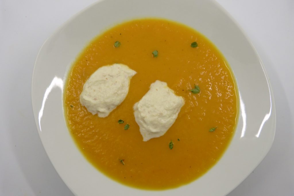 Zum Servieren die Suppe in tiefe Teller schöpfen. Von der Mousse mit 2 Teelöffeln Nocken abstechen und auf die Suppe geben. Sofort servieren, sonst zerfließen die Nocken.