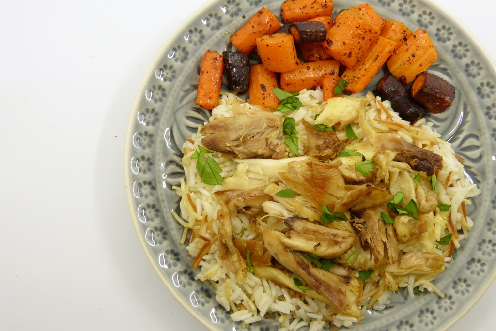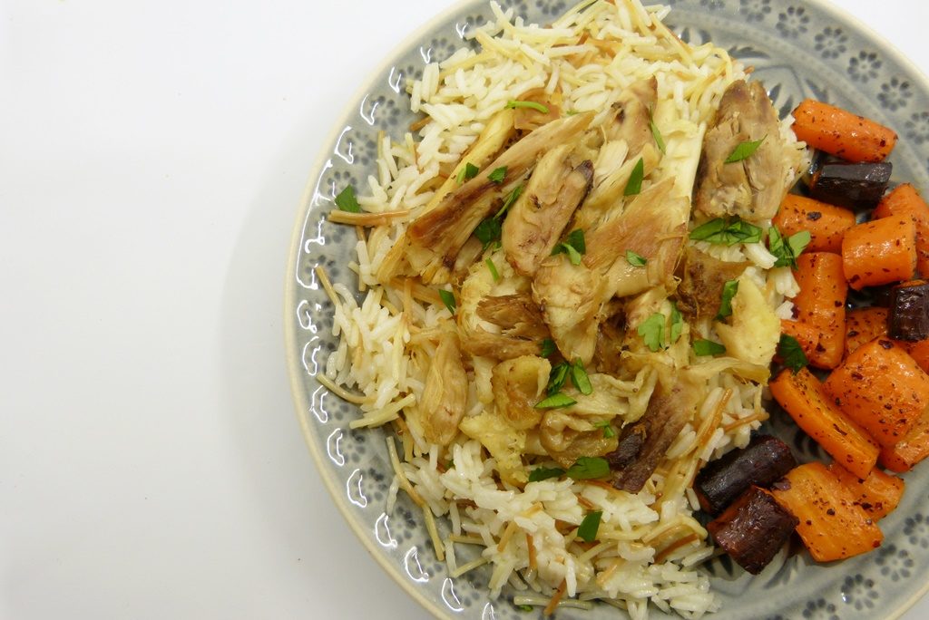 Nein, es gibt trotzdem Hühnchen. Irgendwer muss die Eier ja auch legen, so. Und ich muss endlich mal die Gelegenheit ergreifen, Euch unser Lieblingsrezept mit Huhn zu zeigen. Das Ganze ist klassische türkische Hausmannskost und im Grunde eine Resteverwertung: Wenn man Hühnersuppe gekocht hat, dann hat man ja das Fleisch des Suppenhuhns übrig. Und das wird hier von den Knochen gerupft und knusprig gebraten. Dazu gibt es türkischen Reis: das ist ein Pilaw; für den werden zunächst Fadennudeln oder Reisnudeln (also şehriye oder kritharaki) geröstet dann werden diese mit Reis und etwas von der Hühnerbrühe fertig gegart.