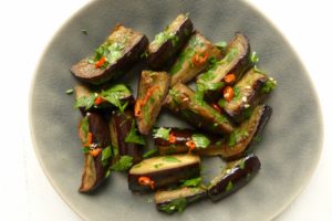 Auberginen-Wedges – eine Aubergine war da die wurde, in Spalten geschnitten, mit Olivenöl gebacken, dann mit Chili, Condimiento Bianco und Petersilie aromatisiert. Habe ich ganz allein gegessen, ein Glück….