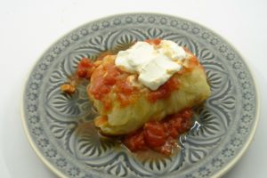 Sarma wollte ich schon lange machen, aber wie das so ist – immer ist irgendwas. Als Hülle verwendet werden Blätter von sauer eingelegten ganzen Kohlköpfen; zu kaufen gibt es den Kohl in türkischen und osteuropäischen Lebensmittelgeschäften. Hier werden sie gefüllt mit einer Mischung aus Hackfleisch, Speck, Brötchen und Reis und dann in Tomatensauce gegart. Die säuerliche Hülle in Kombination mit der herzhaften Füllung und der Tomatensauce ist toll; allerdings werde ich die Sarma beim nächsten Mal länger garen; die Hülle war noch sehr fest.