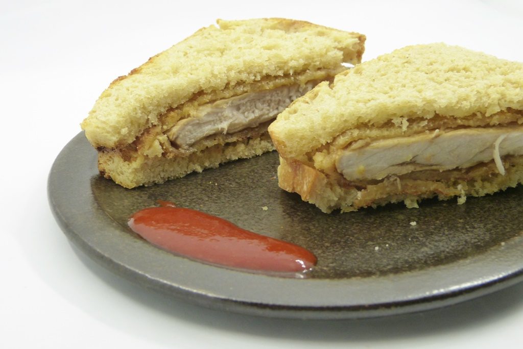 Stimmt. Wir sprechen von Schweinekotelett, das in einer ordentlich würzigen Marinade aus chinesischem Reiswein, Reisessig, Sojasauce und einer nicht unbeachtlichen Menge Knoblauch badet, bevor es paniert wird und zwischen zwei Scheiben Sandwichbrot landet. Ein gefundenes Fressen für den bekennenden Carnivoren Bourdain, aber nicht nur für ihn. Auch wir waren glücklich.
