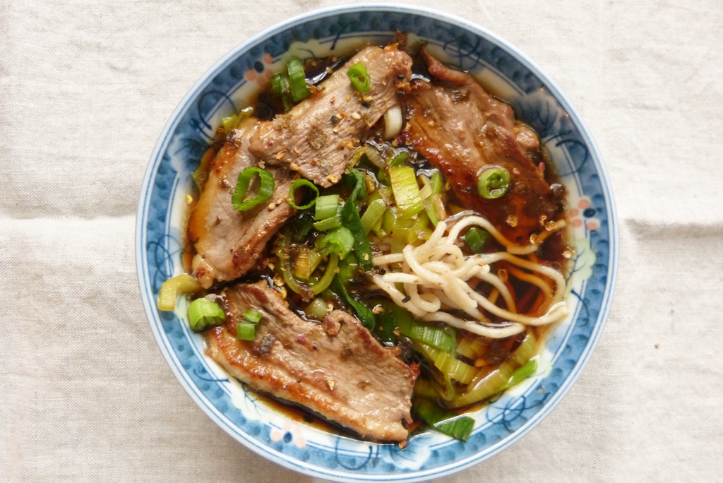 150 Rezepte sind in dem Buch versammelt, unterteilt in 4 Kapitel: da gibt es zunächst „Kleine Schalen“, das sind Nudelsuppen, die ein eher leichtes Essen abgeben: da gibt es einfach Soba in Brühe, chinesische mian mit eingelegtem Senfkohl oder vietnamesische Bun mit Meerbarbe. Auch „große Schalen“ sind Nudelsuppen, aber etwas reichhaltiger. Es warten zum Beispiel Udon mit Garnelen-Tempura oder Mian mit Rindfleisch nach taiwanesischer Art. Dann gibt es Nudeln mit Sauce – frische Udon mit Lachs und seinem Kaviar, die große vietnamesische Nudelschale bò bún oder koreanische Fadennudeln mit Kimchi. Das letzte Kapitel widmet sich gebratenen Nudeln. Es warten Singapur-Nudeln, gebratene Pho mit Rindfleisch oder Feststags-Yakisoba.