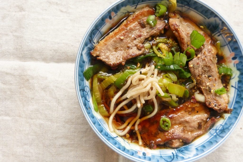 Es wird Zeit für eine Nudelsuppe; Rezepte genug gibt es ja in „Asia Noddles„*. Diese hier kommt aus Japan: Buchweizennudeln in einer würzigen, süß-salzigen Brühe mit Entenbrust und gebratenem Lauch.