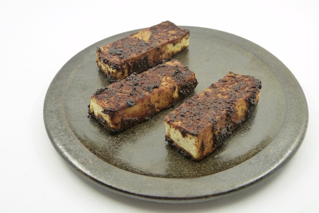 Dengaku ist eine Zubereitungsart, bei der Grillgut mit einer Würzpaste aus Miso und anderen Würzzutaten bestrichen wird. Hier wurde Tofu auf diese Art zubereitet – das ist richtig toll. Der Tofu nimmt die Würzung wunderbar auf.