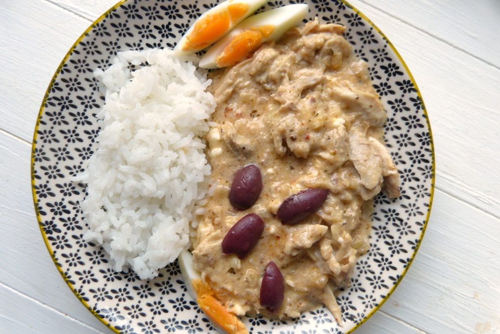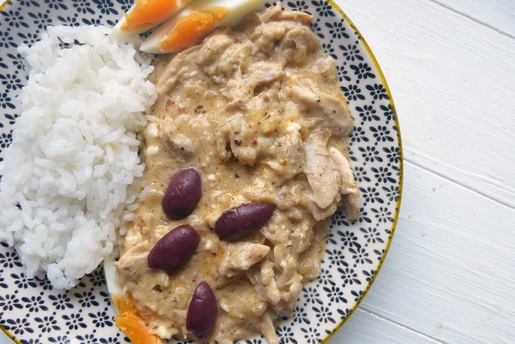 Hier gibt es aber erst mal Hühnchen. Und zwar eines der beliebtesten peruanischen Hühnchengerichte: ein cremiges, recht üppiges Ragout das mit Milch, Brot und Käse angereichert wird.