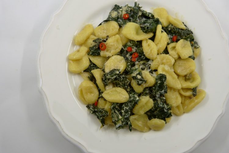 Wer nicht die Muße hat, die Pasta selbst machen, kann natürlich auf Kaufware zurückgreifen. Statt Orecchiette kann ich mir auch andere Pasta vorstellen, es sollte aber eine kurze Form sein.