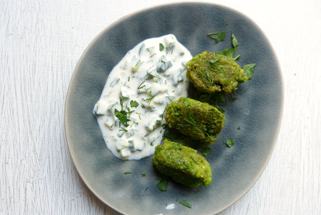 Und dann wird im Rezept eigentlich feiner Bulgur für die Masse verwendet. In meinem Küchenschrank fand sich noch ein angefangenes Paket Kicherbsen-Couscous, das ich aus Neugierde mal gekauft habe. Dieser Couscous wird aus Kichererbsenmehl hergestellt und kann im Prinzip genauso verwendet werden wie normaler Couscous. Er ist glutenfrei und proteinreich. Als Beilage zum Essen hat er uns nicht vom Hocker gehauen, da schmeckt er uns zu kichererbsig. Aber als Grundlage für Füllungen oder Frittermassen macht er sich gut.