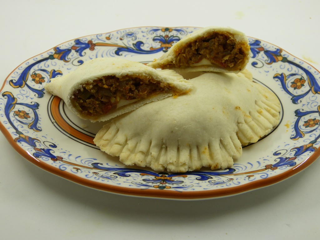 Dass ich Teigtaschen machen muss, liegt auf der Hand, oder? Ich habe mir die Empanadas argentinas ausgesucht. Das Rezept kommt von Monica Nickisch. Sie ist 61 Jahre alt und lebt seit 1995 in Puchheim. Empanadas stehen bei ihr immer auf den Tisch, wenn sich Besuch ankündigt. Das Rezept kommt aus ihrer Familie und sie genießt es am liebsten mit warmem Mate. Mich hat vor allem der Teig interessiert, denn für ihn werden je zur Hälfte Weizenmehl und Maisstärke verwendet.