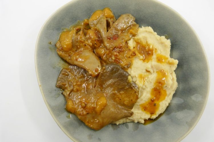 Zu den Pilzen gibt es ein Püree aus Butterbohnen – das ist sehr einfach und auch sehr gut.