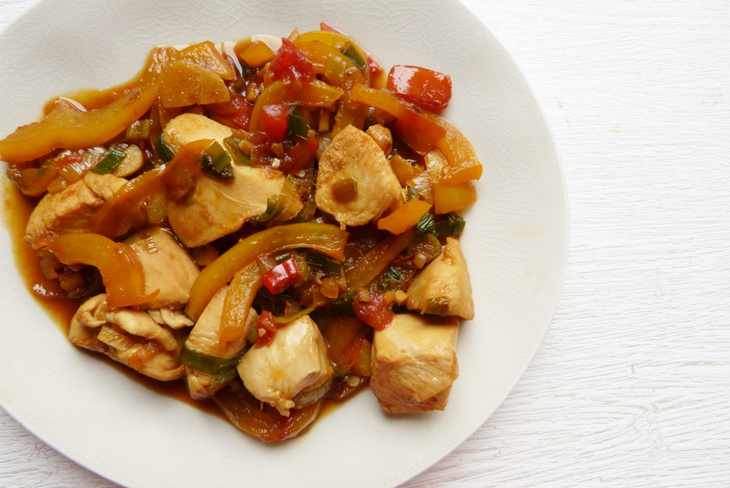 Hühnerbrust in mundgerechte Würfel schneiden.