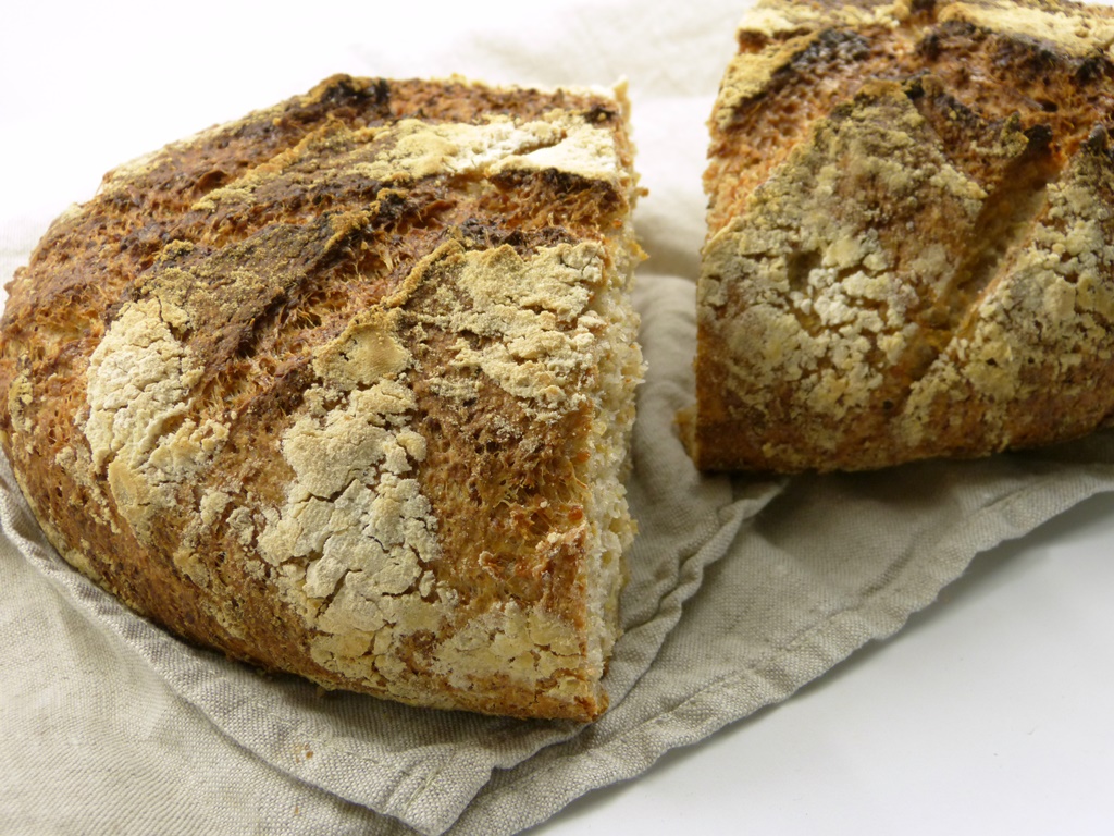 Den Bräter aus dem Ofen holen, den Laib vorsichtig hineinstürzen, wenn gewüscht einschneiden, Deckel wieder auflegen, Bräter in den Ofen schieben und das Brot 55 min backen. Dabei nach 20 min die Temperatur auf 220°C reduzieren und 20 min vor Ende der Backzeit den Deckel abnehmen.