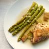 Die Lachsfilets von beiden Seiten mit Olivenöl bepinseln, salzen und ruhen lassen, während man die Puffer vorbereitet. Den Ofen auf 100°C Ober- und Unterhitze vorheizen. Ein Blech mit Backpapier auslegen und in den Ofen geben.