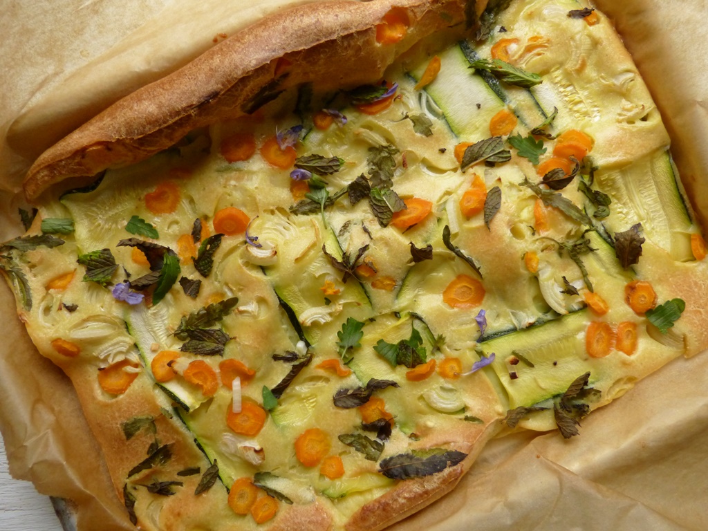 Scarpaccia heißt „ausgetretener Schuh und ist ein altes Bauernessen aus Zucchini, Mehl und Eiern. Das Ganze wird im Ofen gebacken und ist ein tolles leichtes Essen. Besonders schön fand ich die zarte Vanillenote.